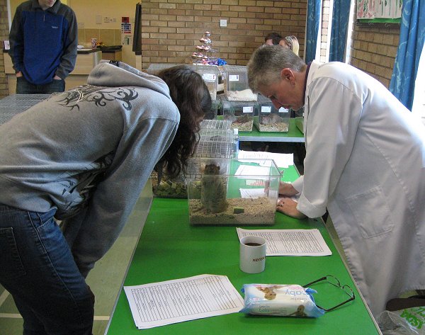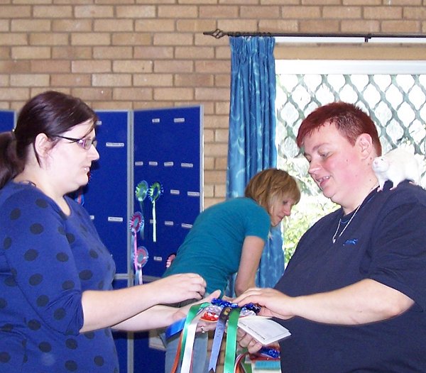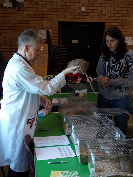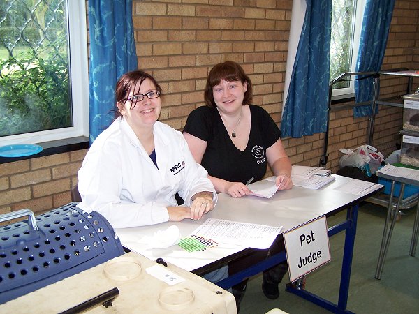 Pet judging - Lisa judging and Claire scribing Photo by Annette |